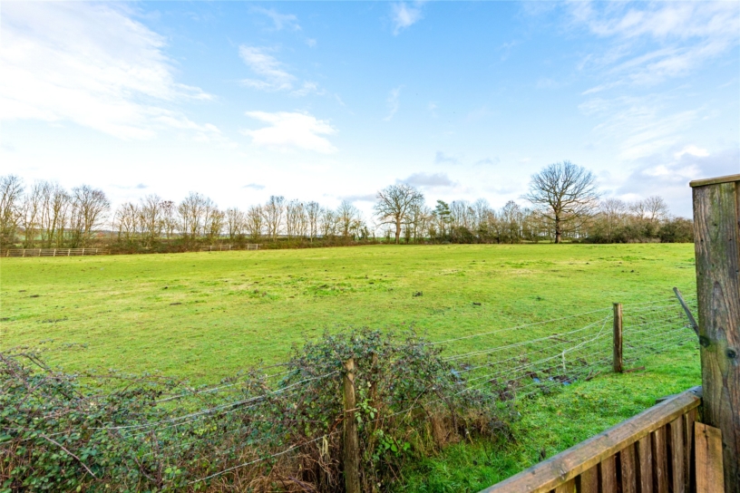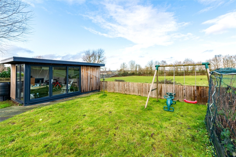 At the front of the house a wooden gate opens to a private gravel driveway providing off-street parking for at least four cars. The landscaped rear garden includes a stone paved patio outside the bi-fold doors, with ample space for tables and chairs for al fresco entertaining, and views over the surrounding open countryside. The rest of the garden is lawned with a path leading to the detached outbuilding. This has air conditioning and could be used as a home office or a gym. There is also a practical storage shed attached to the rear of the outbuilding.