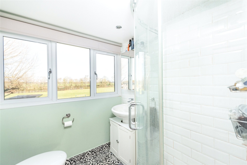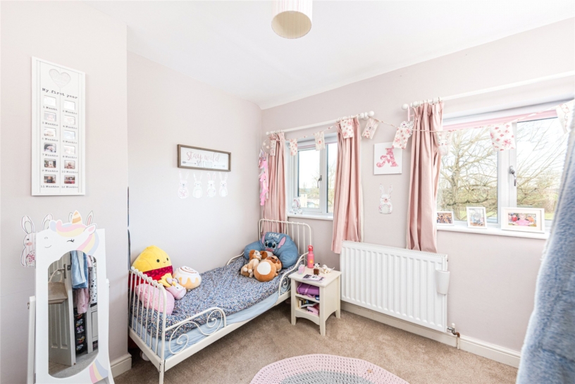 The square footage of the property has been increased by the current owners who have added a single storey rear extension to create an open-plan kitchen/sitting/dining/family room which spans almost the full width of the property. Plenty of natural light is provided by skylight windows and bi-fold doors which open to a patio in the rear garden with views across paddock land. A door opens into a rear lobby which has doors to a utility room, one of the properties’ two cloakrooms, and the garden. The ground floor also has a family room/study, and a formal sitting room which both have windows to the front of the property. The sitting room has a feature fireplace with a wood-burning stove and built-in cupboards and display shelving in the chimney recesses on either side. The first floor landing gives access to four bedrooms and a three piece family bathroom, which includes a shower over the bath. Bedroom one has built-in wardrobes and a three piece en suite shower room.
