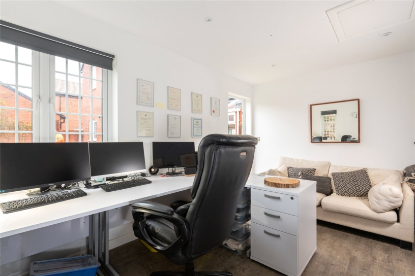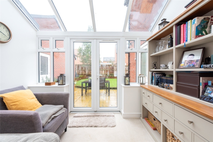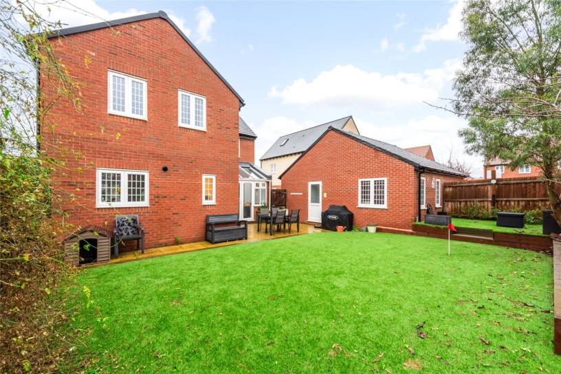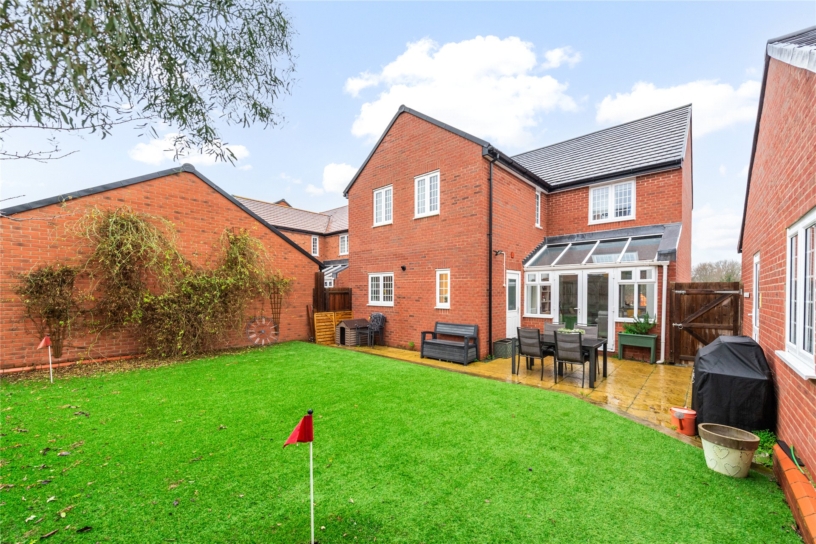 The property was built in 2018 and has 1,649 sq. ft. of accommodation including the garage. The over 18ft. sitting room leads directly into a sun room with a glazed roof and double glazed French doors, with wing windows, to the rear garden. The sitting room also has a door to an open plan kitchen/dining/family room allowing a free flow through the space for modern family life and entertaining. There is also a cloakroom on the ground floor. The garage has been partially converted to create a dual aspect home office with a side door to the rear garden. The first floor landing provides access to the four bedrooms and a family bathroom which includes a bath with a shower over. The dual aspect principal bedroom has an en suite shower room. The front garden has a lawn and a paved pathway to the entrance door. The driveway provides parking for up to three cars and access to a store room in the remaining garage which is accessed via an up and over door.