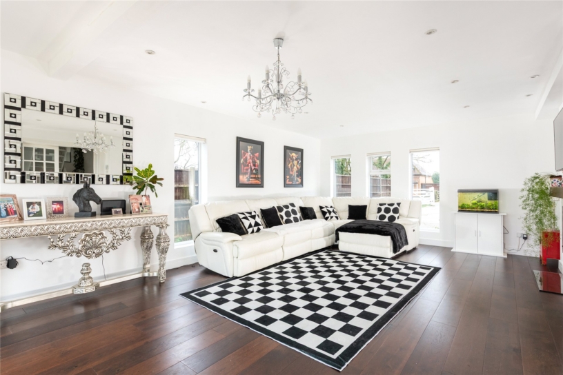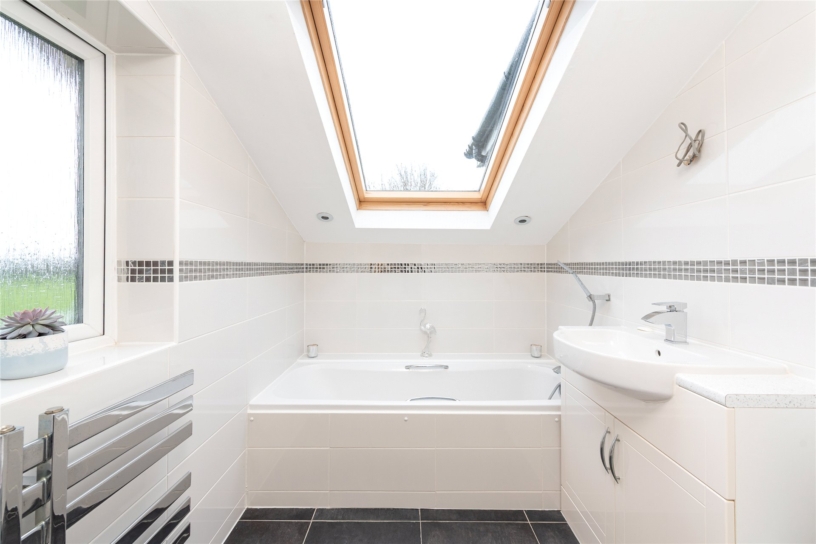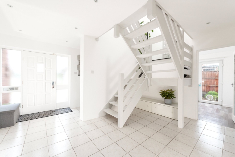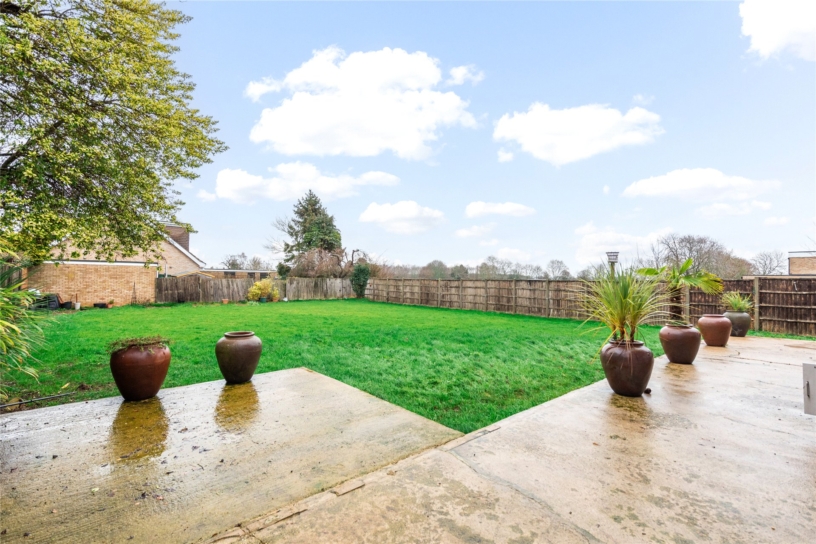 A gated side access leads to the rear garden which is fully enclosed by timber panelled fencing. It has an extensive patio area which spans the rear and down one side of the house and has ample space for tables and seating for outdoor entertaining. The rest of the garden is laid to lawn and allows purchasers to landscape as they desire.