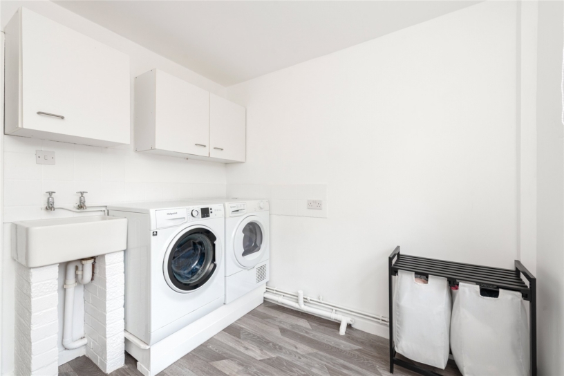 The kitchen is fitted with a comprehensive range of full height, wall, and base units, including glazed display cabinets, shelves, wine storage and pan drawers. Complementary work surfaces incorporate a one and a half bowl sink and drainer. Integrated appliances include a double oven and an electric hob with an extractor over and there is space for additional appliances. There is ceramic tiled flooring and a window overlooking the rear garden. The utility room has a small sink, plumbing for a washing machine, space for a tumble dryer and a door to the rear garden.