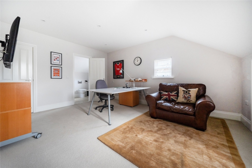 The property was built in 2011 and has had the same owner since new. The 2,169 sq. ft. of accommodation is enhanced by high ceilings, creating a feeling of space. The entrance porch leads into the dining/family room and kitchen which forms the central hub to the house. A door from the dining/family room opens to an inner hall which has stairs to the first floor with understairs storage and a door into the utility room which has plumbing for a washer/dryer and a fridge, access to the cloakroom, and a door to the side. Double doors from the hall lead into the over 20 ft. sitting room which has hardwood flooring and double doors to the rear garden. The first floor landing provides access to three bedrooms and a four piece family bathroom. The principal bedroom has an en suite shower room and all of the bedrooms have fitted wardrobes. The second floor has a further bedroom which is currently used as a home office. It has a walk-in wardrobe, eaves storage and an en suite shower room.