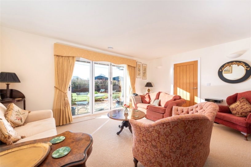 A particular feature of the property is the rear garden which is enclosed by timber fencing. The fence is slightly lower across the rear boundary with hedging beyond, maintaining a high level of screening but allowing views over the fields beyond. The garden has been landscaped including established borders with a variety of shrubs and trees interspersed. There are gravelled and paved outdoor entertaining areas and a feature circular lawn. On one side, at the bottom of the garden, there is a vegetable garden with raised beds.