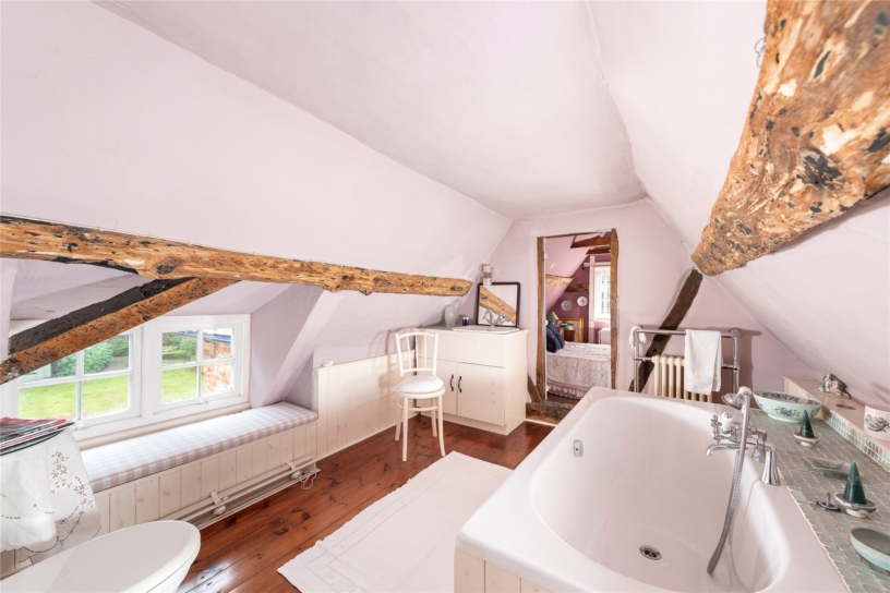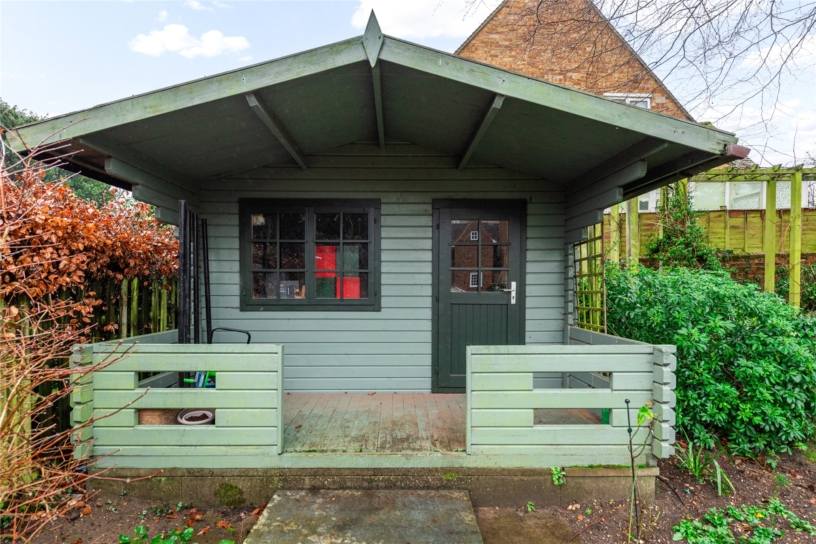 The rear garden is a major feature of the property and is enclosed by walls on the right hand side and across the rear boundary, with fences and mature hedgerow on the left. Flagstone steps from the conservatory lead up to a terrace for outdoor entertaining, and a brick path on one side provides access to a detached log cabin which could be used as a home office or hobbies room if required. The garden is principally lawned and includes raised borders and mature trees including Beech and Yew trees.