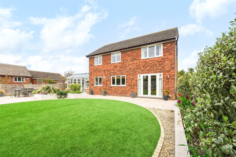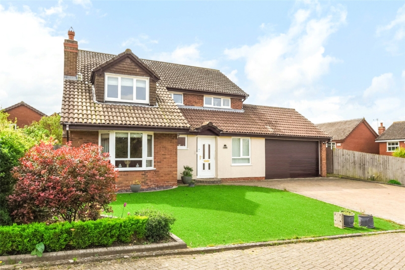 A five bedroom detached property with three reception rooms, off street parking, an integral double garage and a southwest facing low maintenance rear landscaped garden, in a village location and with no onwards chain.