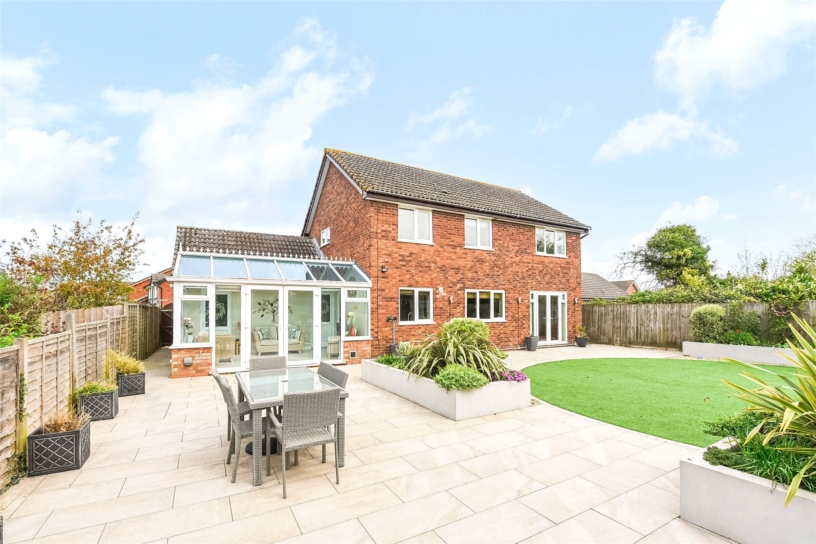 Both gardens are low maintenance. The front has block paved parking for up to four cars; the remainder is laid with artificial lawn. The southwest facing rear garden is laid with a circular artificial lawn and the rest comprises a porcelain patio with access to the dining room and conservatory, creating space for indoor/outdoor entertaining. There are planted raised flower beds alongside additional seating with outside lighting and electrics. Gated access leads to the front.