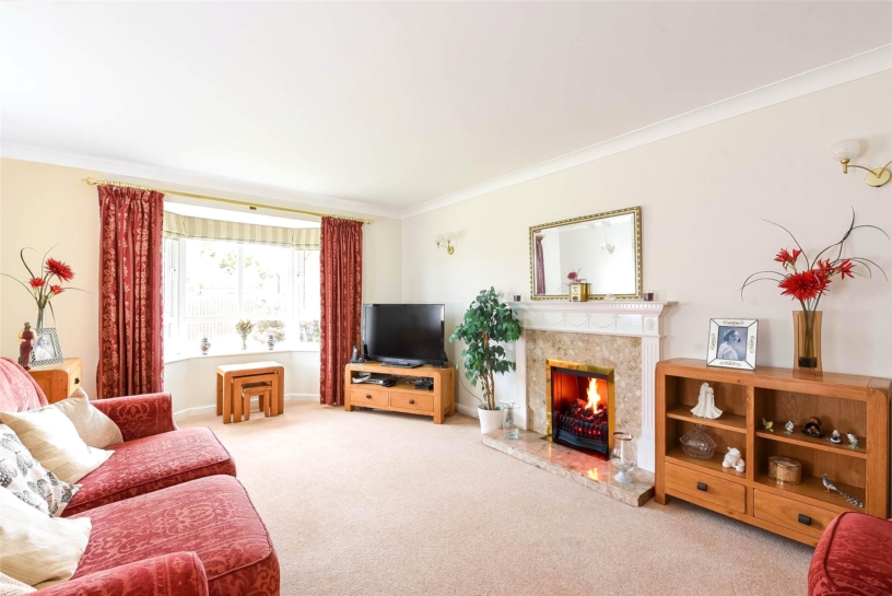 The kitchen has a range of Shaker style units with granite worksurfaces. Integrated appliances include a four ring gas hob with an extractor, electric ovens, and a dishwasher. Tiled flooring extends to the breakfast area and utility room. There are a separate dining room and a conservatory with a pitched glass roof, both with French doors to the southwest facing garden. The almost 17 ft. sitting room has a walk-in bay window overlooking the front aspect and a feature gas fireplace with a tiled hearth and an Adam style mantel surround. There is a ground floor bedroom with access to a walk-in wet room.