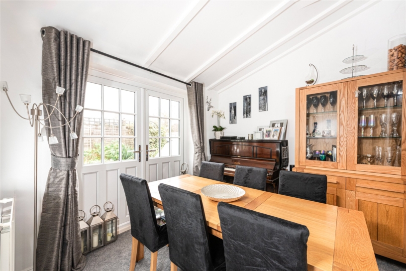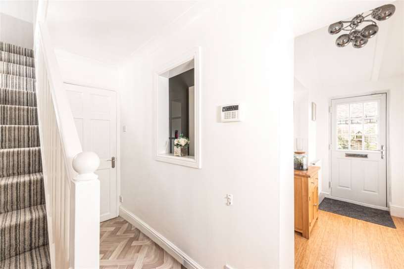 In the centre of the village, the property has over 1,495 sq. ft. of accommodation set over two floors including an entrance hall, which has a walk-in pantry and an understairs cupboard and accesses the kitchen and two reception rooms. The dining room has French doors to the front of the property and double doors accessing the sitting room with a feature fireplace and patio doors to the garden. A further door in the hall leads to a ground floor bedroom with fitted wardrobes, a door to the garden, and an en suite shower room. The family room, accessed via the sitting room, has a door to a utility room. There are three first floor bedrooms with the principal bedroom having built-in storage and an airing cupboard; there is a re-fitted three piece bathroom. Outside, a gravel driveway with EV charging point and parking for up to six cars which leads to the front of the property where there is a paved patio with mature shrub and flower beds, and tree boundaries.