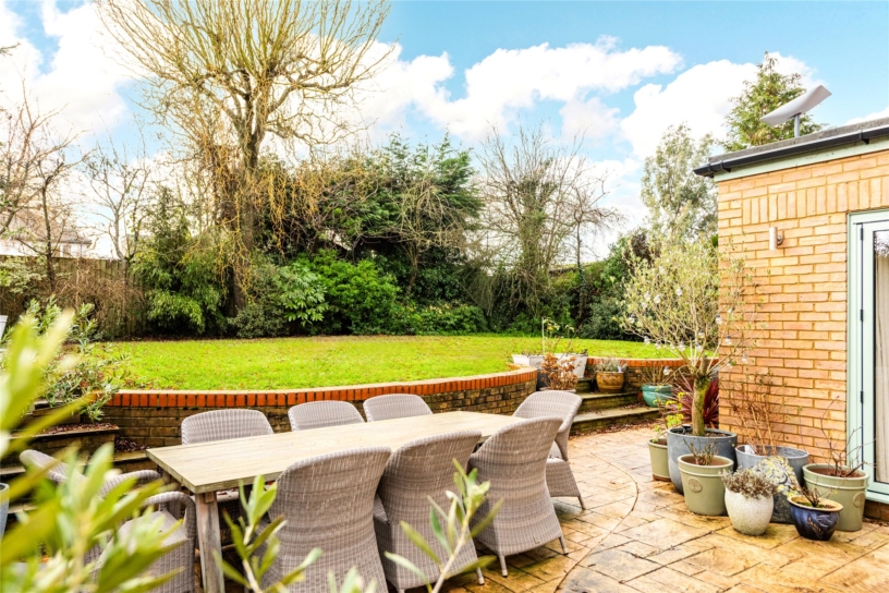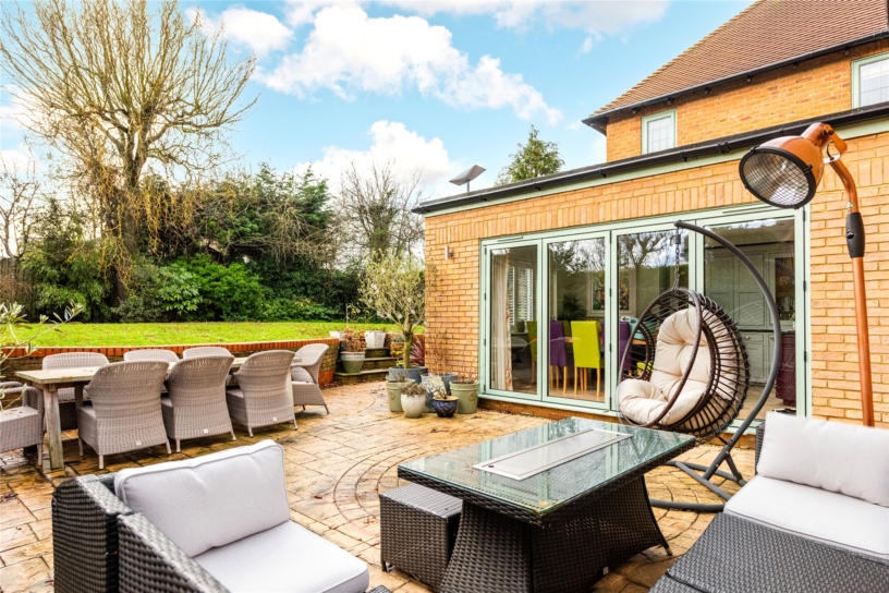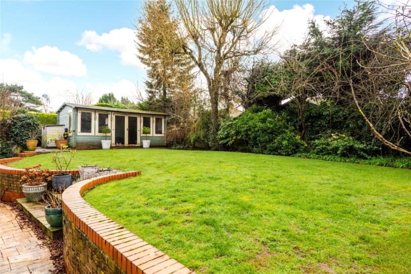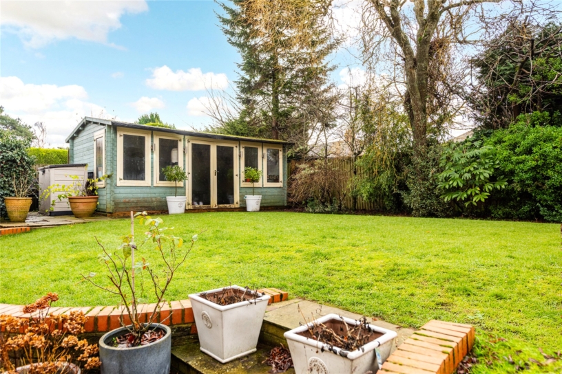 A block paved driveway has parking for up to five cars ahead of the one-and-a-half width integral garage. Gates on both sides of the house lead to the wraparound rear garden which has a patio across the rear of the house for al fresco living and space for a hot tub. Decoratively curved retaining walls flank shallow steps up to the lawn which is bordered by mature shrubs and trees. There is a timber summer house, now used as a gym, outside lighting and a tap.