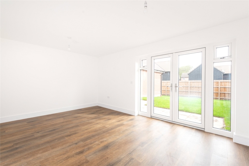 The property is situated in a semi-rural private development of 24 homes in between the village of Upper Caldecote and the historic village of Ickwell and its noted village green. The approximately 1,048 sq. ft. of accommodation includes an entrance hall with stairs to the first floor, a cupboard, and a cloakroom. There is Amtico wood effect flooring continuing into the sitting room with glazed double doors to the rear garden and the open plan kitchen/dining room is fitted with a range of modern base and wall units with quartz worksurfaces and integrated appliances. The first floor landing has a built-in cupboard and access to the three double bedrooms and a family bathroom. The principal bedroom has an en suite shower room. The driveway provides parking and access to the garage which has up and over doors and a side door. Gated side access leads to the rear garden which is principally lawned with a patio area and enclosed by timber panelled fencing.