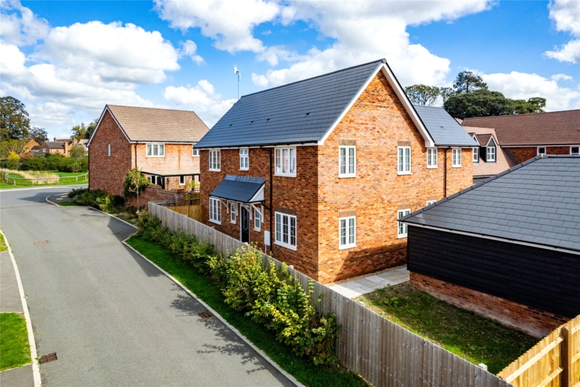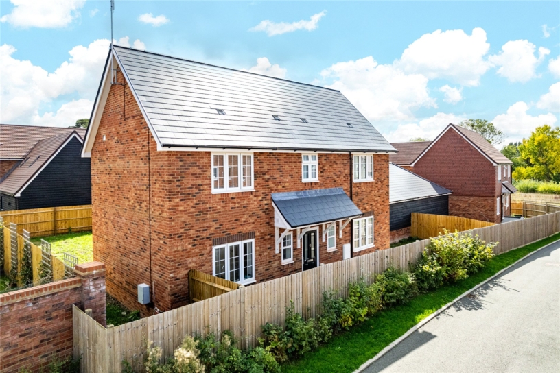 A newly built four bedroom detached family home with wraparound gardens and a double garage with additional off street parking, set in a small gated development.