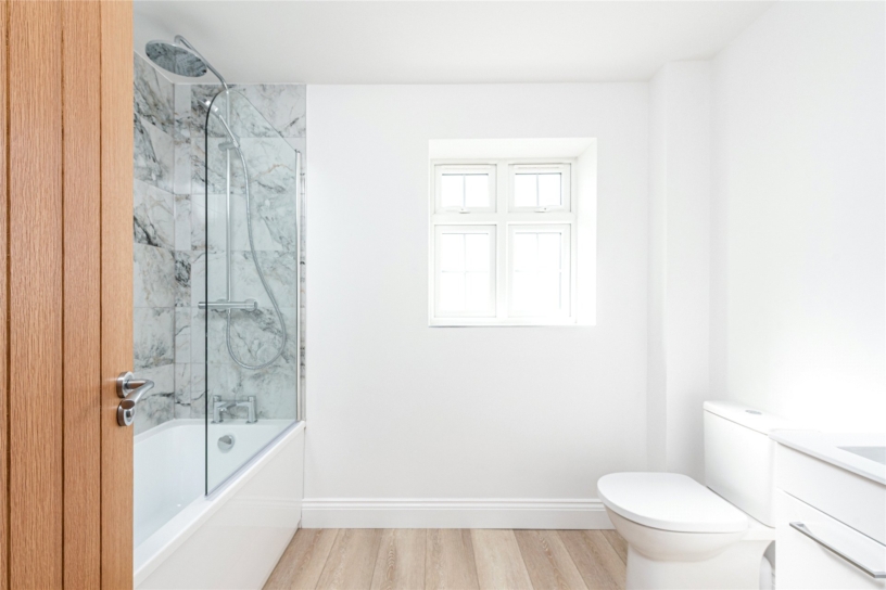 A staircase with an understairs cupboard has a window overlooking the rear and rises to the open first floor landing which has doors into all four bedrooms, the family bathroom, and a storage/airing cupboard. The principal bedroom is dual aspect with built-in wardrobes and, like bedroom two, has a partially tiled, en suite shower room. Bedroom three is also dual aspect and shares the three piece family bathroom with bedroom four. All the contemporary fitted bathrooms have high specification fittings.