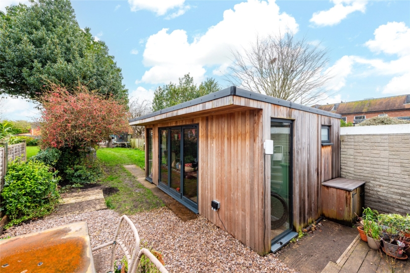 A 1930s extended three/four bedroom semi-detached house with off street parking and a rear garden with a separate garden room and a summer house, within a level walk of Marlow high street and train station.