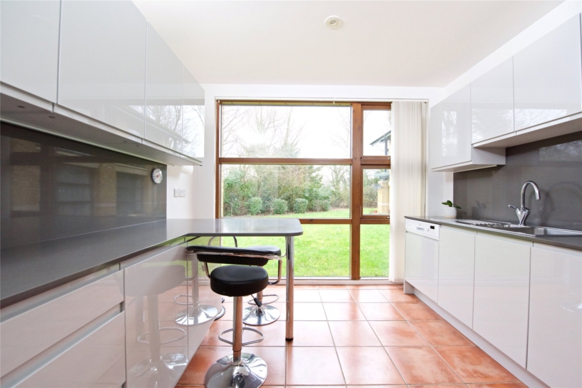 The property is situated in gated communal grounds. Accommodation includes an entrance hall and an open plan sitting/dining room with triple aspect full height windows and a door to the patio. There is a fitted kitchen with a breakfast bar, a utility room and a three piece bathroom. The principal bedroom has fitted wardrobes, a dressing room with fitted wardrobes and dressing table and an en suite shower room. There are three further bedrooms, one with fitted wardrobes. The property has a garage and an allocated parking space and there is further visitor parking. Unfurnished, available 3rd May. Average water usage is covered by the landlord, at no additional cost.