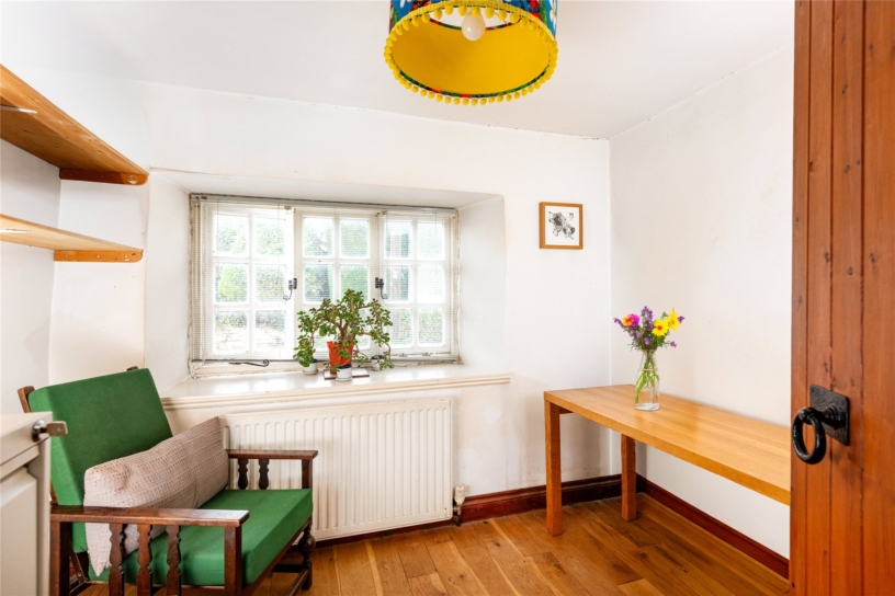 At the front of the property is the sitting room with the front door and three windows overlooking the garden. It has an exposed beam and an open fireplace with an inset wood burning stove at one end. A door leads to the dining room with stairs to the first floor and French doors to the rear courtyard. It has further doors to the study and the kitchen/breakfast room which has a range of base and wall units with a freestanding dual fuel cooker with extractor canopy over. There is space and plumbing for a dishwasher and washing machine as well as room for a four-seater breakfast table.