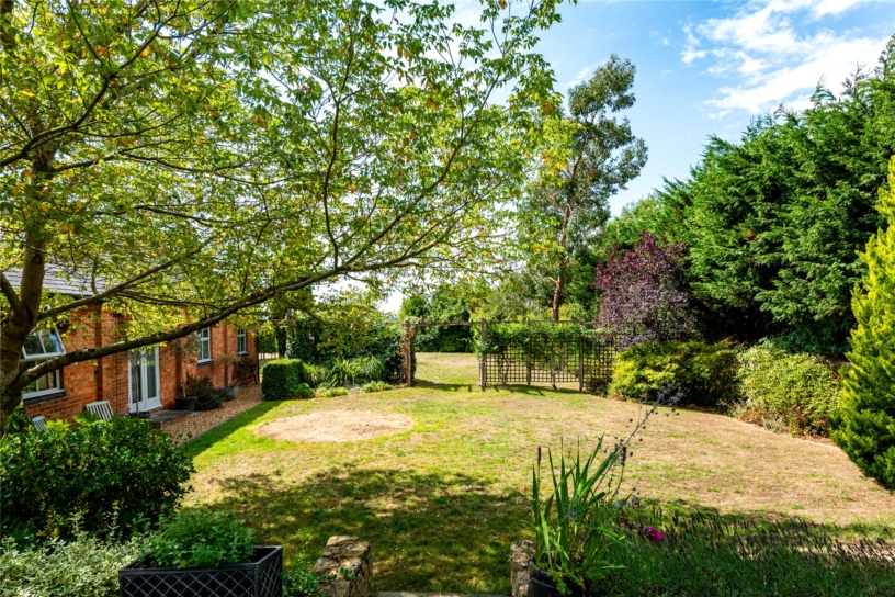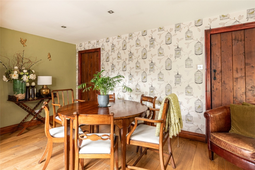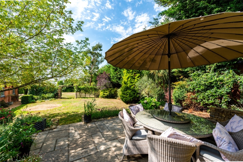 A five-bedroom barn conversion with nearly 2,900 sq. ft. of versatile accommodation, set in mature gardens with far-reaching countryside views, and with a private driveway and a double garage on the edge of Little Brickhill village.