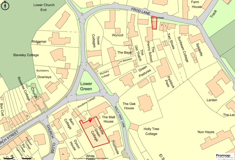 The property is approached by a pedestrian path off Lower Church Street which leads to a courtyard area and side access to the secluded rear garden which is a particular feature of the property and measures approximately 80 ft. deep by 85 ft. wide. This mature garden is laid predominantly to lawn with established shrub and flower borders, a vegetable garden and a paved patio with space for tables and chairs for al fresco entertaining. There is also a brick outhouse and shed, plus a greenhouse. The two garages are located on Frog Lane, and there is also on-street parking on Lower Green.