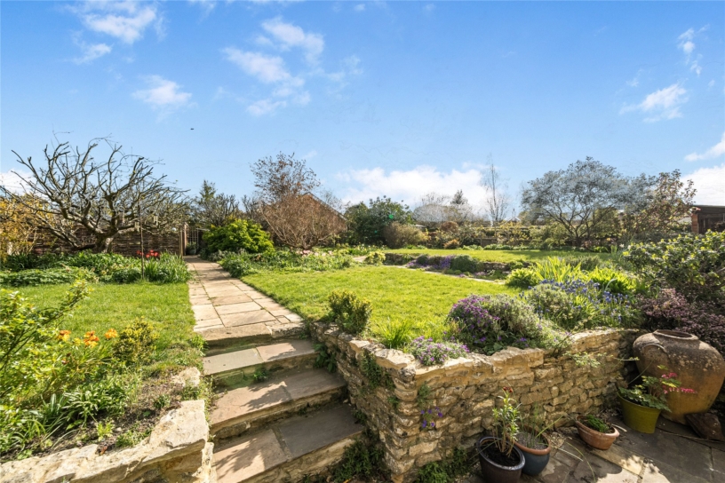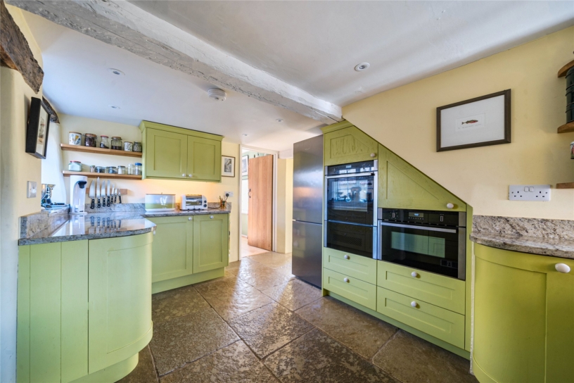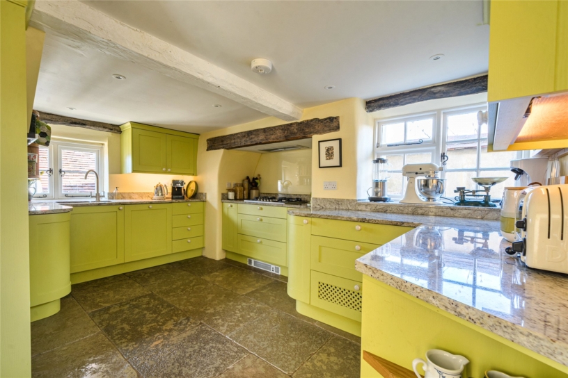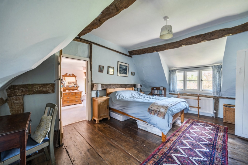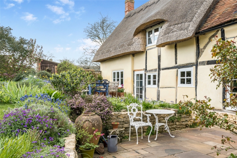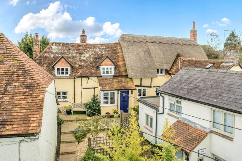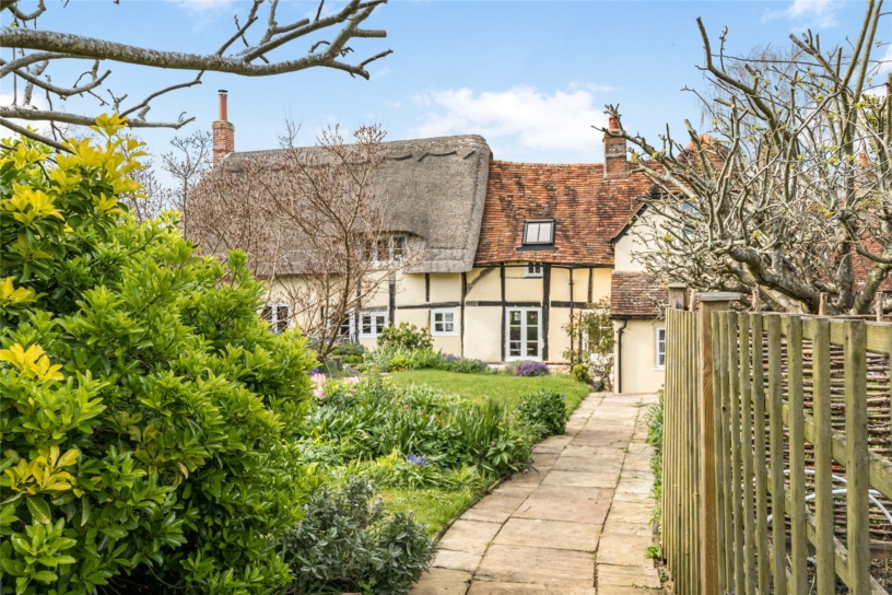 A Grade II listed four bedroom house believed to date back to the 15th century with character features, a country garden and an elevated location overlooking the lower village green in the village of Cuddington.