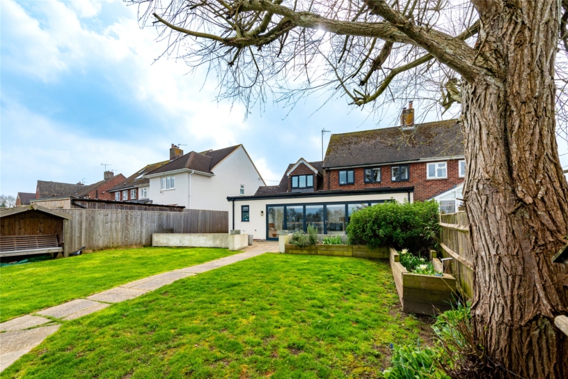 The square footage of the property has been increased by the current owners who have added a single storey rear extension to create an open-plan kitchen/sitting/dining/family room which spans almost the full width of the property. Plenty of natural light is provided by skylight windows and bi-fold doors which open to a patio in the rear garden with views across paddock land. A door opens into a rear lobby which has doors to a utility room, one of the properties’ two cloakrooms, and the garden. The ground floor also has a family room/study, and a formal sitting room which both have windows to the front of the property. The sitting room has a feature fireplace with a wood-burning stove and built-in cupboards and display shelving in the chimney recesses on either side. The first floor landing gives access to four bedrooms and a three piece family bathroom, which includes a shower over the bath. Bedroom one has built-in wardrobes and a three piece en suite shower room.