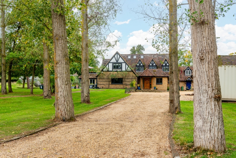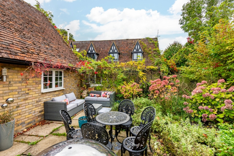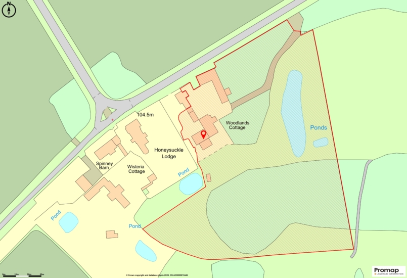 Woodlands is approached via a pair of electronically operated wrought iron gates which open to the gravelled driveway connecting the front of the house, the cottage, and the barns (the latter have areas of concreted screed at the front). Behind the annexe cottage is an enclosed paved terrace garden planted with borders planted with established shrubs and plants.