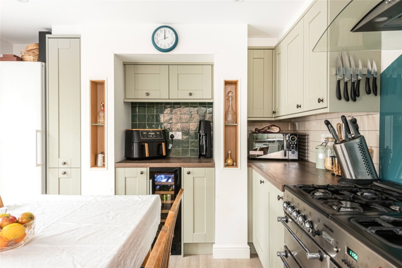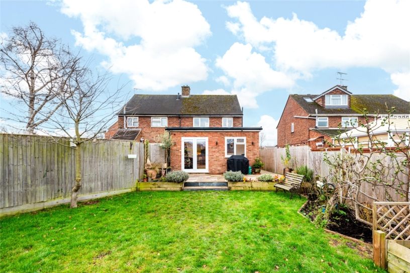 A modern extended two double bedroom semi-detached property with an open plan kitchen/dining/family room and a separate reception room with an enclosed rear garden and off street parking in a cul-de-sac position in Aston Clinton.