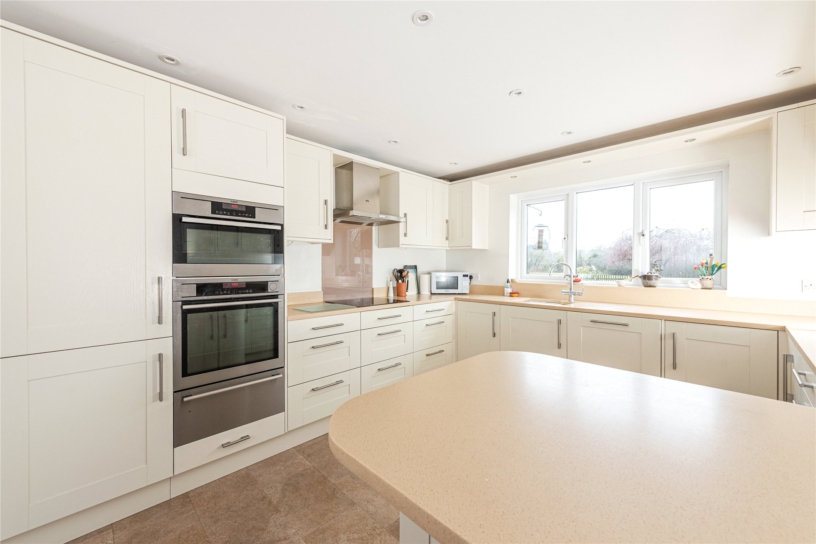 On the first floor there are five double bedrooms, one en suite, and a four piece family shower room. Bedroom one has a rear aspect, with fitted wardrobes and a four piece en suite bathroom with a shower cubicle. Bedrooms four and five have built-in wardrobes and overlook the rear garden and paddock. Bedrooms two and three have front aspects.