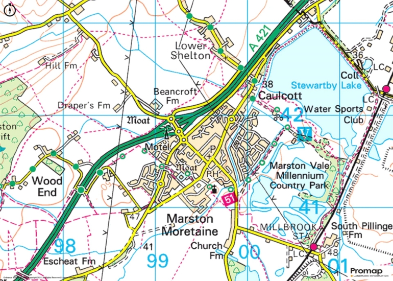 Marston Moretaine has a shop, post office, supermarket, church and a lower school. Milton Keynes and Bedford, which has the Harpur Trust schools, are reached via the A421. Millbrook station (1 mile) has trains to Milton Keynes and Bedford stations. (Bedford to St. Pancras International 43 minutes and Milton Keynes to Euston 33 minutes). The Forest Centre and Millennium Country Park, 1 mile away, have 225 hectares of woodlands, a wetlands nature reserve, trails for walking, running and cycling and countryside views.