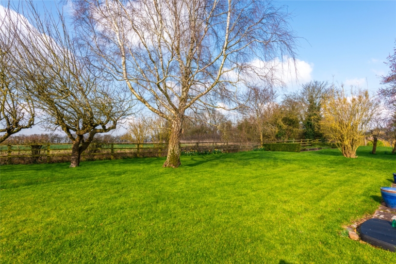 The gardens wrap around the bungalow and are a major feature enclosed by a combination of mature hedgerow and post and rail fencing with views over open fields and countryside. They have been designed with an emphasis on outdoor living and are principally lawned with established borders and mature trees including apple and pear trees, a vegetable patch, and three patio areas. Agents' note: There is a Public footpath at the rear of the garden accessed by a five bar gate and pedestrian gate to the lane.