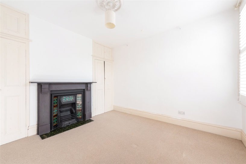 The property has 1,959 sq. ft. of accommodation set over three floors. The ground floor has an entrance hall with original flooring and stained glass windows. The sitting room has a shuttered bay window to the front, fitted library storage, and a feature fireplace. The second reception room has doors to the rear garden and an open fireplace. An open plan kitchen/ breakfast/dining room has bi-fold doors to the rear garden which has artificial grass, and is walled and sheltered by established trees. The first floor has three bedrooms and a family bathroom. The top floor has two further bedrooms; one en suite. There is permit parking available on the street. The property is available from mid September on an unfurnished basis.