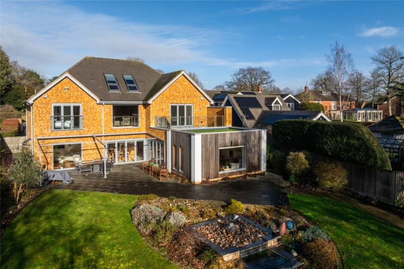The construction and design of the property has incorporated a number of hi-tech features. These include a zoned underfloor heating system throughout the house, a media system including an integrated speaker system, Rako lighting which can be operated from a smart phone, energy efficient windows and glazing, an integrated vacuum system and Photovoltaic roof panels which provide an annual income from the feed in tariff. Solid oak internal doors are a feature throughout. The property is entered via a pillared, remotely operated gated entrance onto a block paved driveway which provides off street parking for up to eight cars and access to the double garage. The house is situated within 5 minutes’ walk of local amenities which include a shop, pharmacy, doctors' surgery, and a village lower school.