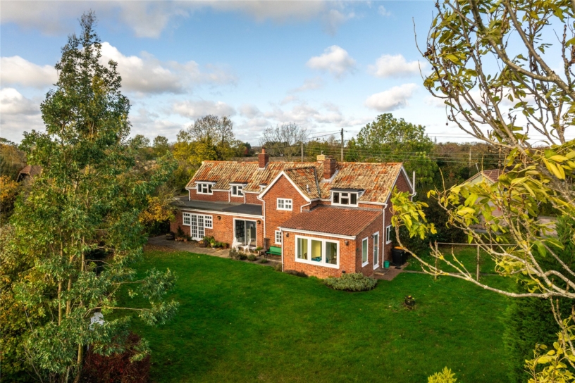 The property originally dates from the 1840s and has been extended including double glazing throughout apart from the front porch. It now has 2,236 sq. ft. of versatile accommodation over two floors. On the ground floor there are three principal reception rooms, and a study and garden room which both have doors to the rear garden. There is also a cloakroom and an open plan kitchen/breakfast room. The first floor landing has a built-in cupboard and an airing cupboard, and gives access to four bedrooms and a three piece family bathroom. The principal bedroom has an en suite bathroom. At the front there is off street parking for up to four cars leading to the attached double garage which has two pairs of timber double doors, power connected and a side door. The wrap around gardens are fully enclosed by mature hedgerow and trees providing screening and privacy.