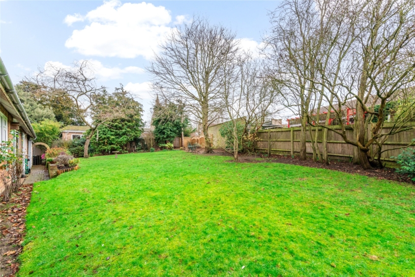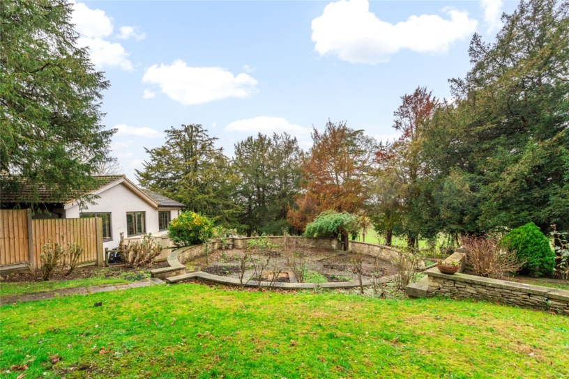 The front garden is terraced, and has borders planted with a variety of mature shrubs and trees including yew, inset with pathways to the front door. A side access leads to the rear garden which is enclosed mainly by close boarded fencing. A rear gate accesses The Bury. A paved pathway leads to the rear of the house with steps up to an elevated lawn with further established borders providing a haven for wildlife.