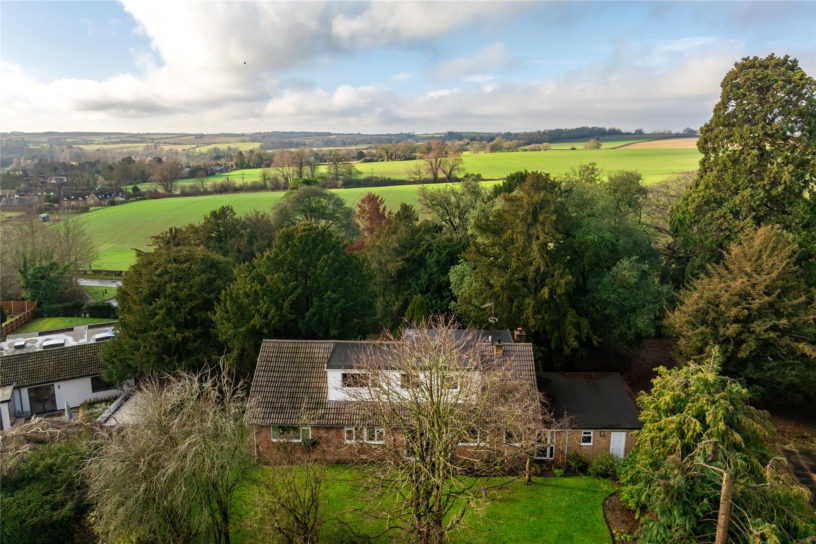 The property is situated on the site of the original Pavenham Bury, an historic country house, demolished in the 1960s and replaced with this popular development in the village. The house is approached by a treelined driveway, which serves this and two other detached properties, and this property retains the former rose garden and mullioned stonework. It has been thoughtfully enlarged and improved and has ground floor bedrooms allowing single storey use if required. There is 2,124 sq. ft. of accommodation over two floors. The ground floor has three reception rooms, two double bedrooms, a shower room, a cloakroom, and an open plan kitchen/breakfast room. The first floor has two bedrooms, both with fitted wardrobes and en suite bath or shower rooms. The roof space provides potential to create an additional bedroom subject to planning permission. A covered walkway links the house to the garage and workshop, and has a door to the rear garden.