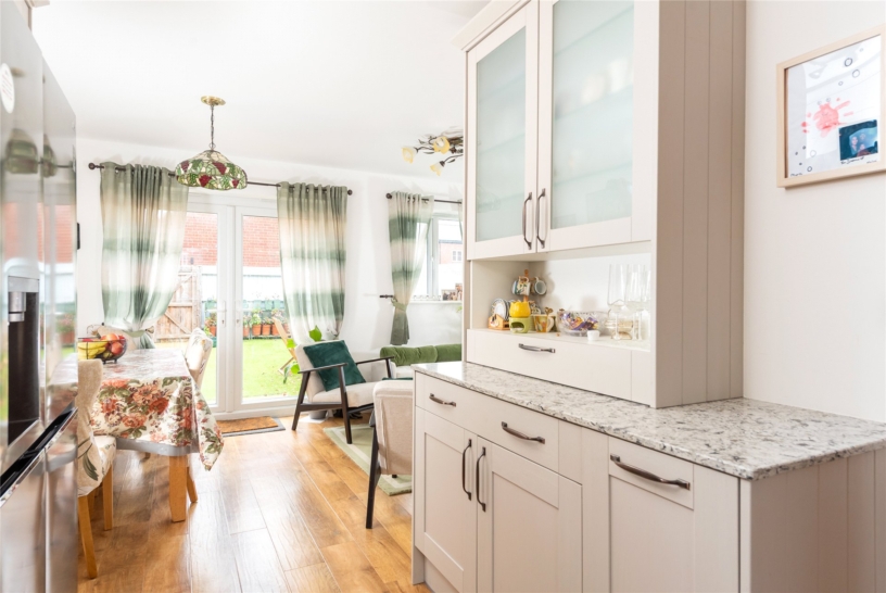 The property was built by Linden Homes in 2017 and provides 1,164 sq. ft. of accommodation. The entrance hall has a built-in cupboard, stairs to the first floor and a cloakroom. There is also an open plan kitchen/dining/family room on the ground floor. The first floor landing has an airing cupboard and stairs to the second floor. The sitting room overlooks the front and could be used as a fifth bedroom if preferred. The principal bedroom has a refitted en suite shower room. There are three further bedrooms and a three piece bathroom on the second floor. The property has double glazing and gas radiator central heating. There is a garden at the front with a pathway to the front door. A gated side access leads to the rear garden which is enclosed by timber panelled fencing. It is designed for ease of maintenance with an artificial lawn and a paved patio. There is a driveway with parking for one car and access to the garage which is in a block at the rear of the property.