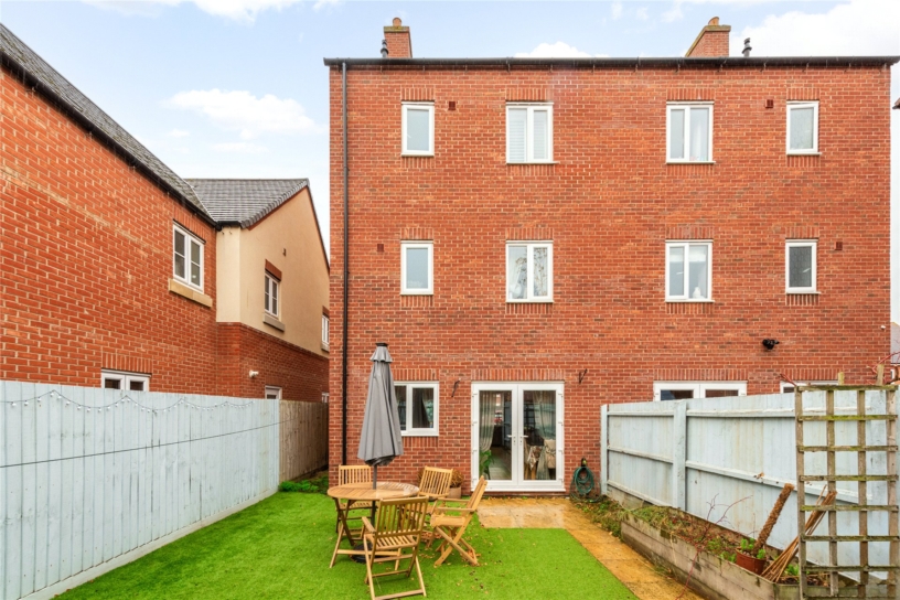A modern four bedroom semi detached three storey townhouse with an enclosed rear garden, driveway parking, and an over 20 ft. garage.