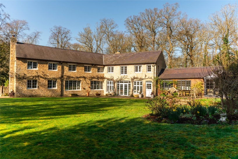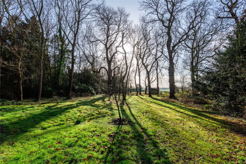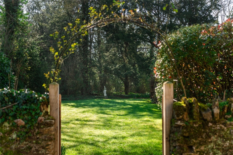 A further wooden gate leads to the formal garden at the rear which has several paved and decked areas with space for tables and chairs for al fresco dining and entertaining. These overlook the rest of the garden which is laid to lawn with established shrub and flower beds and borders, and is enclosed by low stone walls with numerous mature trees providing screening. There is a brick well in one corner which has a metal grille for safety.