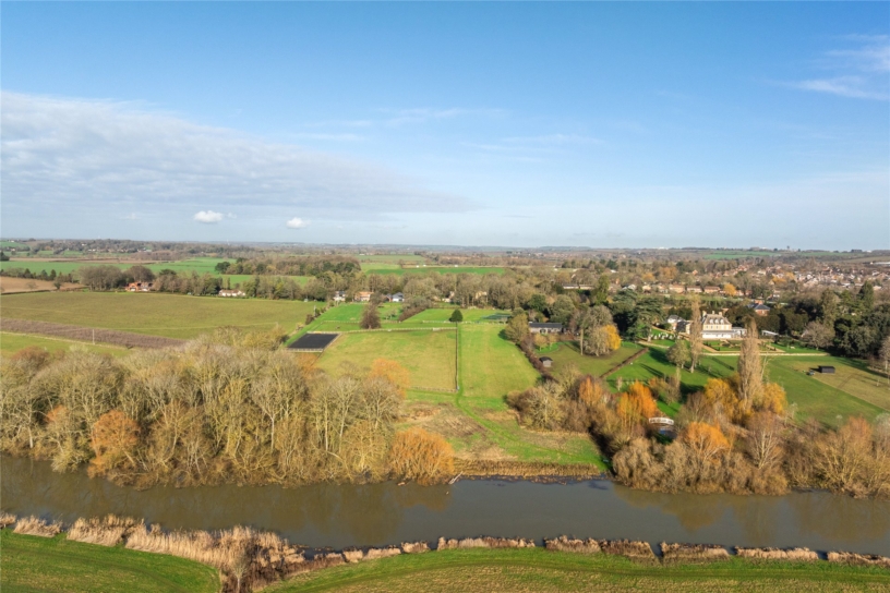 The approximately 13 acres plot includes extensive gated parking areas, a formal garden, a tennis court, a 60 x 40 m olympic sized manege with paddocks running down to the river frontage on the Great Ouse. The property is in a peaceful rural location but is within walking distance of local amenities in the village and is only 10 minutes’ drive from a wider range of amenities in Bedford.