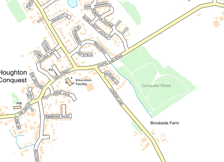 Houghton Conquest is in the northern part of Central Bedfordshire and local amenities include a village shop and Post Office, lower school, village hall, and a church. The Knife and Cleaver is a pub with rooms and restaurant. Further amenities, including a Waitrose supermarket and several independent shops, are available in the market town of Ampthill about 3 miles away. The independent Harpur Trust Schools are in Bedford, approximately 6 miles away.