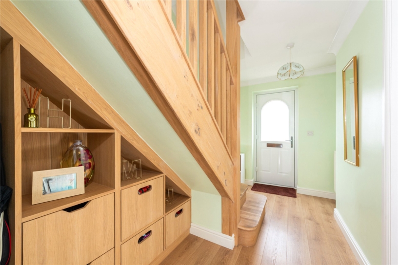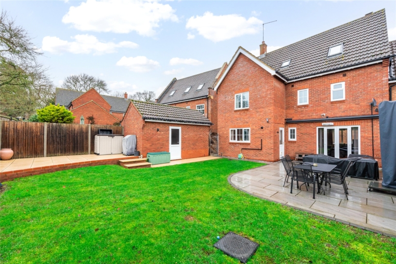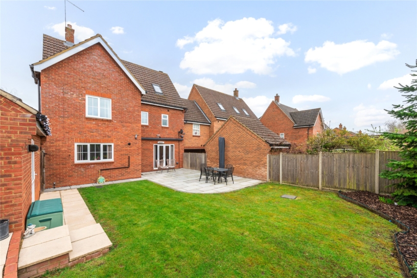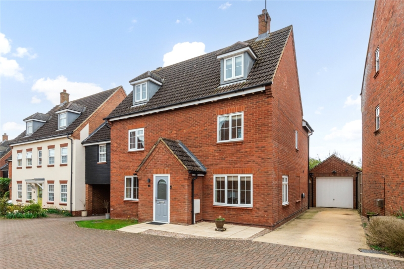 The property is on the market for the first time since it was built in 2005/6 and has been updated to a high specification by the current owners. The 1,969 sq. ft. of accommodation includes an entrance hall with a cloakroom, and a solid oak staircase to the first floor with bespoke built-in storage beneath. The dual aspect sitting room overlooks the front and has French doors to the rear garden. There is also a dual aspect dining room, and an open plan kitchen/breakfast room with a door to the rear garden. The first floor landing has stairs to the second floor and provides access to three bedrooms and the refitted family bathroom. The principal bedroom and bedroom two both have refitted en suite shower rooms. On the second floor there are two further bedrooms, one with an en suite shower room. All five bedrooms have fitted wardrobes.