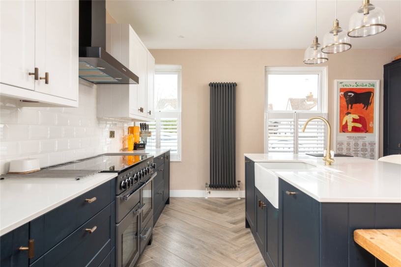 The property originally dates from 1870 and has been refurbished to a high specification throughout. The property has approximately 1,869 sq. ft. of versatile, modern accommodation over two floors. The ground floor has an L shaped entrance hall, a separate sitting room and an open plan kitchen/dining/family room with bi-fold doors to the rear garden allowing a free flow through the space for modern family life and entertaining. There is also a cloakroom on the ground floor. The part galleried landing on the first floor landing has access to the roof space. There are four bedrooms, one of which is currently used as a dressing room and has a custom built range of fitted wardrobes. The principal bedroom has an en suite shower room, and there is a family bathroom. At the side is a covered carport providing access to a brick built double garage which has twin timber up and over doors, power connected, eaves storage and a further up and over door to the rear garden.