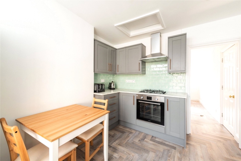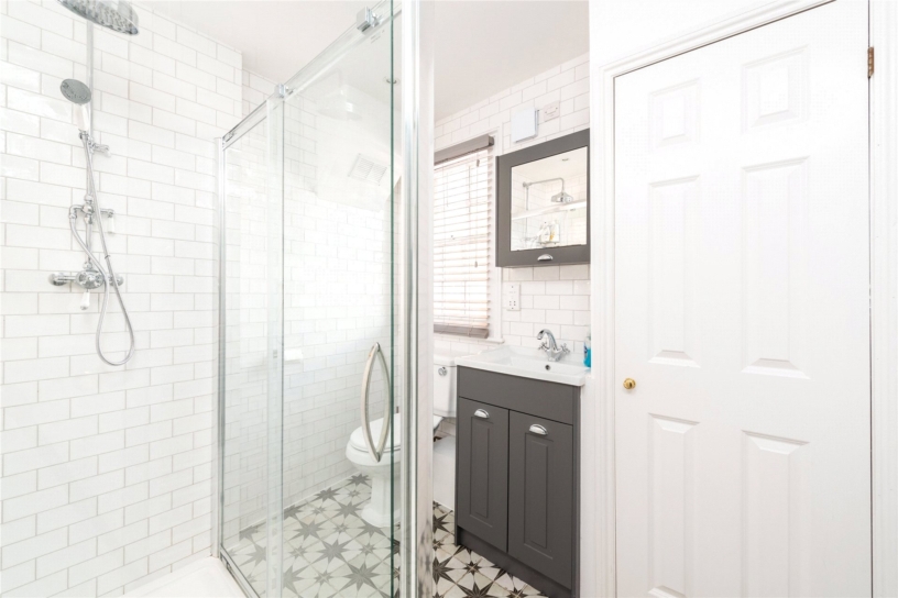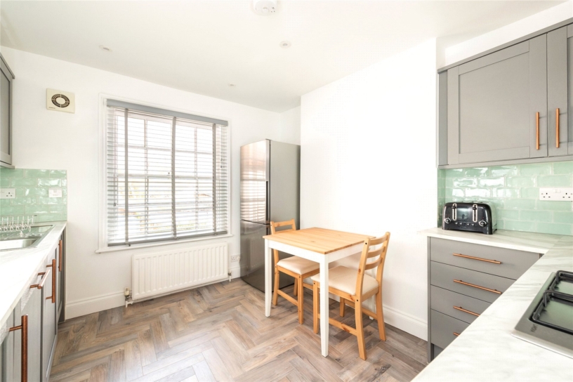 On the first floor there is a 14 ft. sitting room and separate kitchen with built-in electric oven and hob, a washing machine and dishwasher. The shower room has been refitted and includes a vanity unit and a cupboard housing the gas combination boiler. There is also a bedroom, with the two other bedrooms on the second floor. All three bedrooms have sash windows to the front.