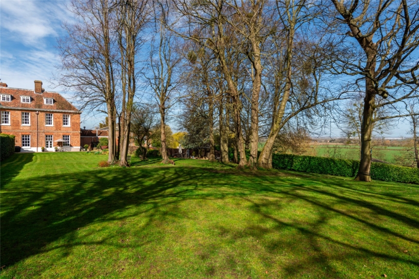 The private rear garden is enclosed by a combination of mature hedges and close boarded fencing. There is a paved terrace which spans the rear of the property and has space for tables and chairs for al fresco dining, and there is also a further gravelled seating area on one side of the garden. The rest of the garden is laid to lawn with established herbaceous beds and borders which have been planted with a variety of shrubs and flowers to provide year round interest. One bed houses a Magnolia tree and there are also many mature trees interspersed throughout the garden. These trees are subject to Tree Preservation Orders because of the Capability Brown link.