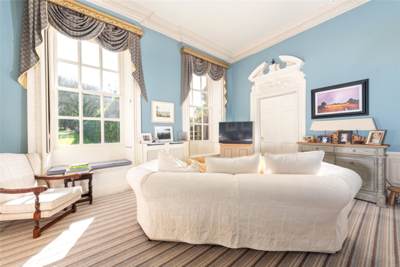 Ashburnham Park House comprises the left hand section of the original mansion as you look at it from the front, and has allocated parking in the gravel area on the left of the mansion steps which has space to park at least five cars. The property has just under 7,300 sq. ft. of versatile accommodation over four floors. The lower ground floor houses a gym/workshop with the rest of the space currently used for storage. There are two formal reception rooms, a study and a kitchen/breakfast room on the ground floor, and seven bedrooms and four bath or shower rooms across the top two floors.