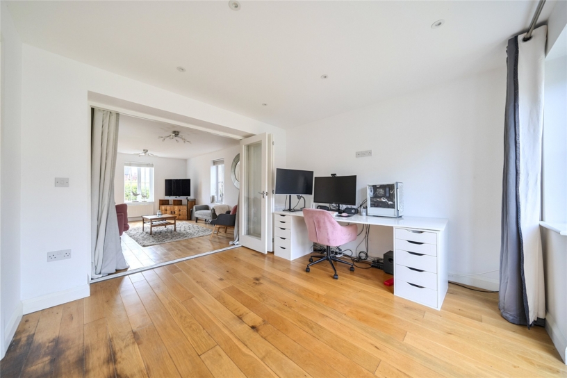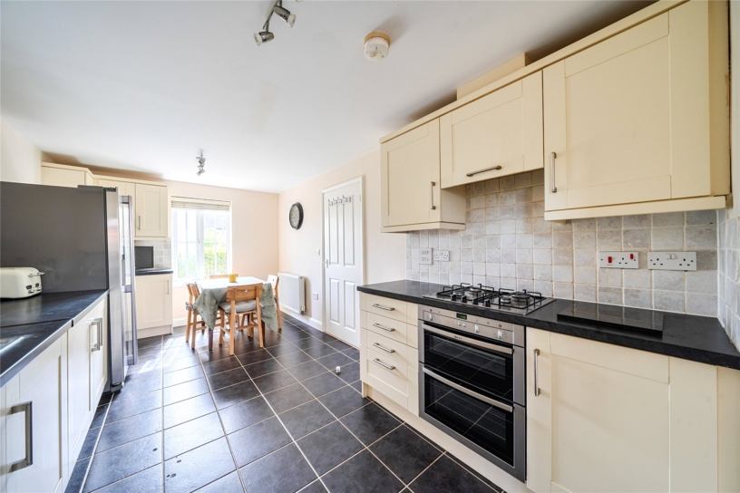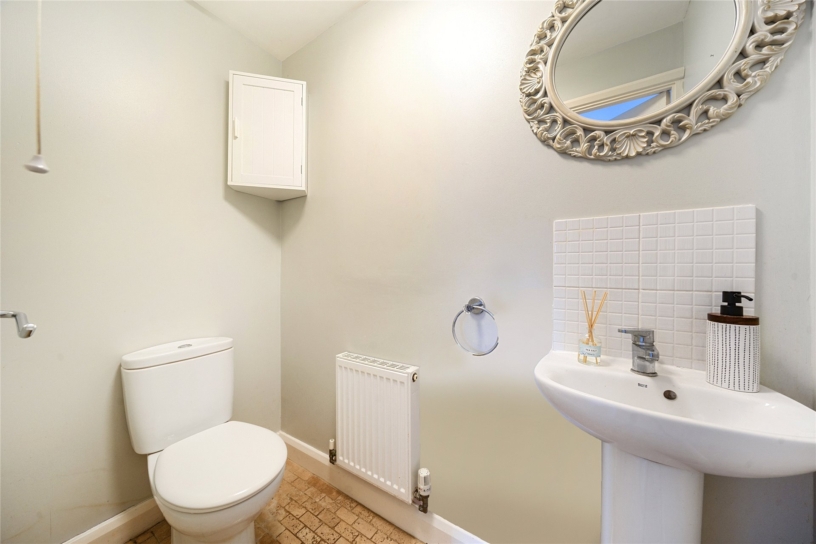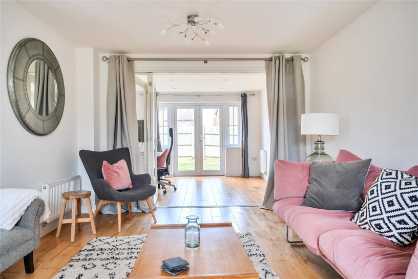 The property has been extended at the rear and now has 1,434 sq. ft. of accommodation. On the ground floor the entrance hall has stairs to the first floor, an understairs cupboard, and a cloakroom. The dual aspect sitting room measures over 16 ft. and has bi fold doors to a family room which has double glazed French doors to the rear garden, and a door to the study. There is also a fitted kitchen/dining room which has an opening into an adjoining utility room. The first floor landing has a built-in cupboard and access to the four bedrooms and family bathroom. Two of the bedrooms have en suite shower rooms and the principal bedroom also has a dressing room. The front is enclosed by hedging and has a path to the entrance door. There is an over 17 ft. garage opposite the property in a block of four garages, and allocated parking for two cars. A gated side access leads to the rear garden which is enclosed by timber fencing and has lawned and gravelled areas, and a paved patio area.