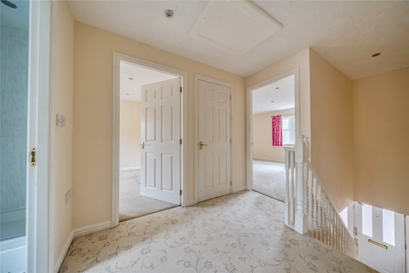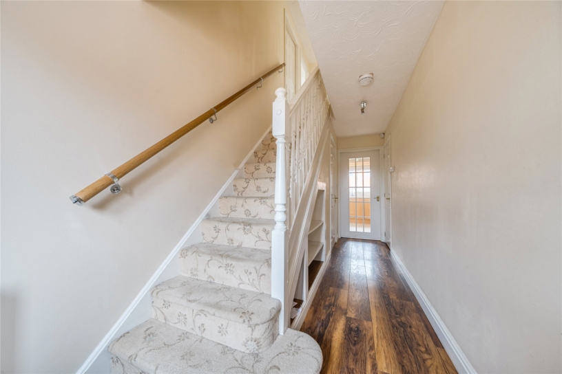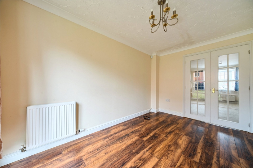 The property has 1,316 sq. ft. of accommodation over two floors. The ground floor has an entrance hall with stairs to the first floor, a built-in cupboard, and a cloakroom. A door opens to the sitting room which has a feature fireplace, a bay window to the front, and double doors to a separate dining room which has double doors to the rear garden. There is also a fitted kitchen, and a separate utility room. The first floor landing has an airing cupboard and provides access to the four bedrooms and a four piece family bathroom. Three of the bedrooms have built-in wardrobes. The principal bedroom also has an en suite shower room. The block paved driveway provides parking for up to six cars and access to the integral nearly 17 ft. garage which has an up and over door. A gated side access leads to the rear garden which is enclosed by timber panelled fencing and is principally lawned with a paved patio area.