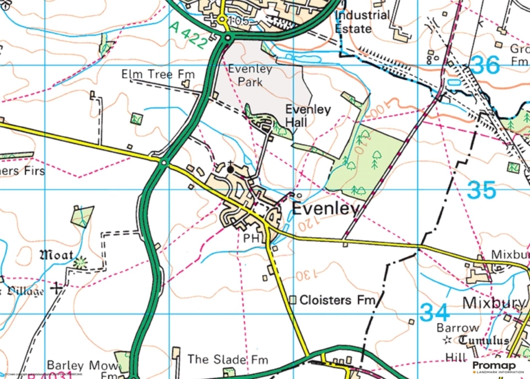 Evenley is in the centre of a conservation area, bounded to the northeast and northwest by the Great River Ouse and its tributary; its southeastern boundary forms the county border with Oxfordshire, its northwestern boundary the border with Buckinghamshire. It is a vibrant village with a church, the Forge Coffee shop and post office, a village hall, and the Red Lion public house. The much-prized village green with its cricket pitch, is central to village life and is surrounded by mainly period houses built in the local stone. There is also a pocket park and Evenley Woods, both of which are enjoyed by locals. A range of shopping, leisure and health facilities are located in the nearest market town of Buckingham, while Bicester has a wider range of facilities, and there are railway stations at Bicester North and Bicester Village.