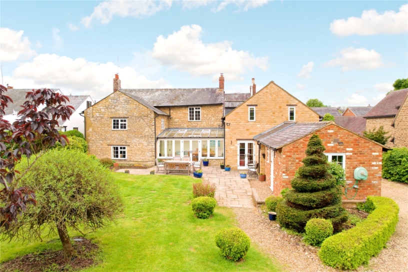 The stone under tile property is set back from the road and backs onto open countryside. It has approximately 3,297 sq. ft. of versatile accommodation arranged over two floors. On the ground floor there are five reception rooms a snug, a bespoke oak fitted kitchen/breakfast room, a utility room and a cloakroom. On the first floor there are five bedrooms, one of which has an en suite bathroom, and two family shower rooms accessed by two separate staircases. Four of the bedrooms have built-in wardrobes, two of these are bespoke oak. The plot of 0.48 acres includes front and rear gardens. The property has pedestrian access to the front and there are double gates to the driveway which sweeps around the rear of the property to a gravelled parking area providing parking for up to eight cars. This leads on to the double garage which has an electric up and over door, and power and light connected. The property is situated within walking distance of village amenities and is under 4 miles away from wider amenities in Buckingham. It is also in the catchment area for the Royal Latin Grammar school.