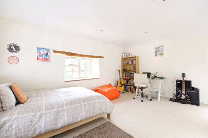 The master bedroom is dual aspect with views over the gardens. It has wood flooring, an exposed ceiling beam and bespoke built-in oak wardrobes along one wall. There is an en suite bathroom which has a Velux window and an exposed ceiling beam. It includes a freestanding claw and ball foot rolltop bath, a wall mounted vanity unit with a mounted wash basin, a shower cubicle with a rain shower and a hand held shower, and a WC. A shower room serves bedroom two, and has a built-in oak wardrobe and bespoke oak fittings including a window seat and a vanity unit with a wash basin and a fitted mirror above. There is also a shower cubicle and a WC. From the other staircase, the landing accesses one of the bedrooms which is dual aspect with views over the garden and to the side. Stairs lead up to the two further bedrooms, one of which is also dual aspect and the other has views over the garden. All three bedrooms have built-in wardrobes along one wall, which are bespoke oak in bedroom four. These bedrooms share a shower room which has a shower cubicle, a vanity unit with wash basin and a fitted mirror above, and a WC with a concealed cistern. There is also a heated towel rail.
