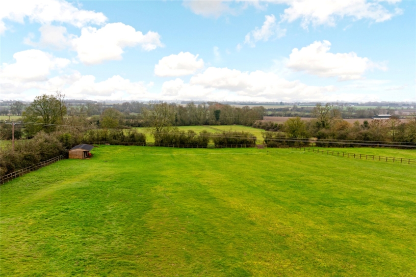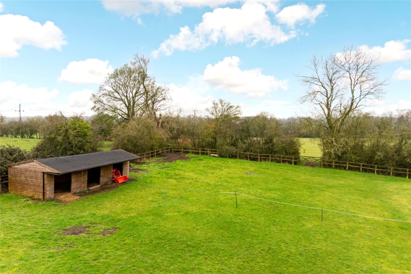To the south of the house, beyond the formal garden are the four fields attached to the property, three of which are enclosed by post and rail fencing, the fourth by indigenous hedging with farm fencing. The field immediately overlooked by the garden has the field shelter and three five-bar timber gates to the next field.