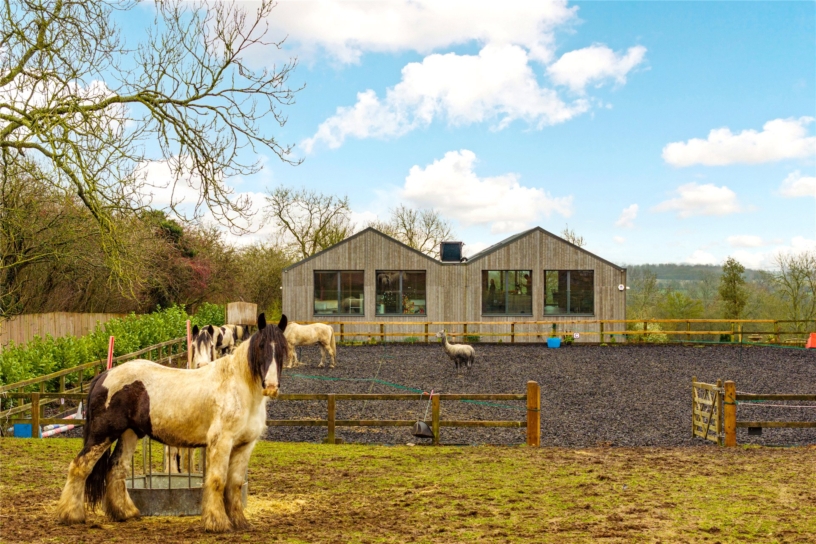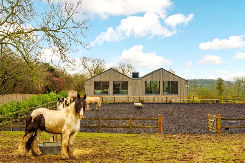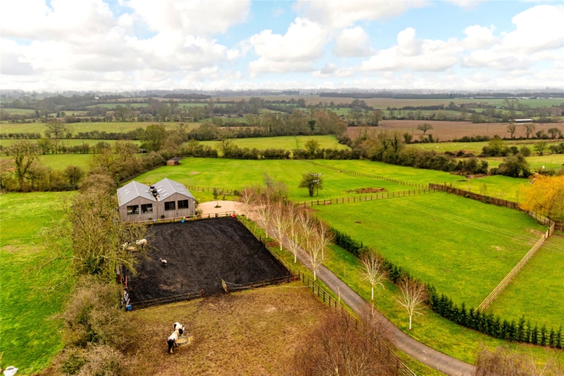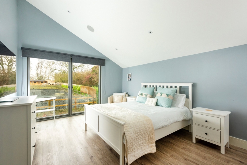 To the south, the first-floor principal bedroom and the internal balcony have doors overlooking the formal garden and fields, while bedrooms in the north immediately overlook the manège and the stables and paddock beyond. There is an integral but independent one bedroom annexe and a two-bedroom mobile home near the stables provides potential accommodation for a groom. There Is an all-round view of the horses in the stables, manège and paddocks from inside the barn.